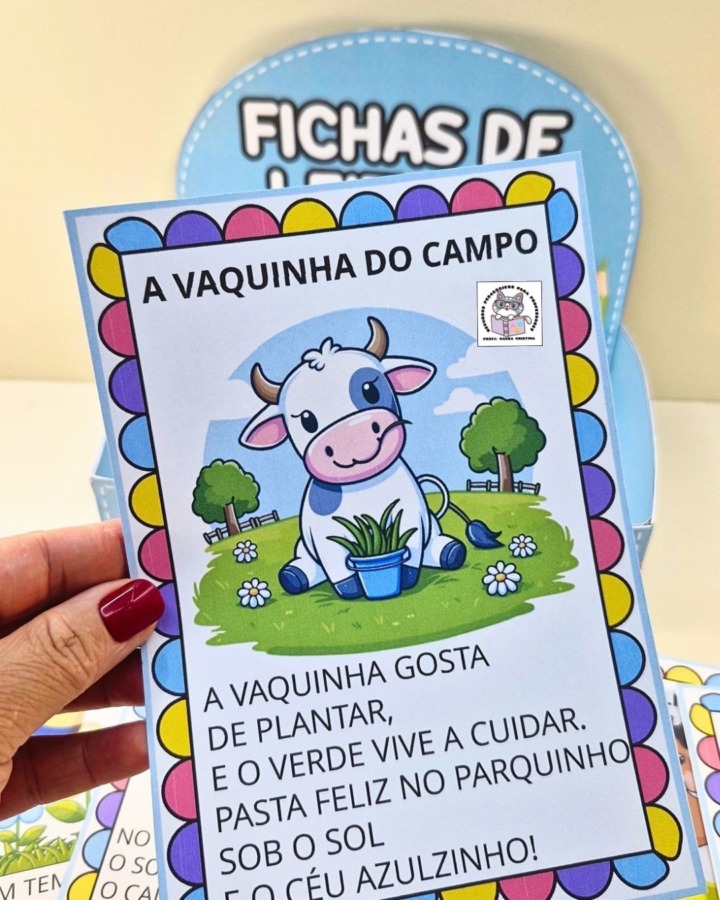 As fichas trazem histórias curtas, rimadas e ilustradas , perfeitas para trabalhar leitura, com crianças em fase inicial de alfabetização.