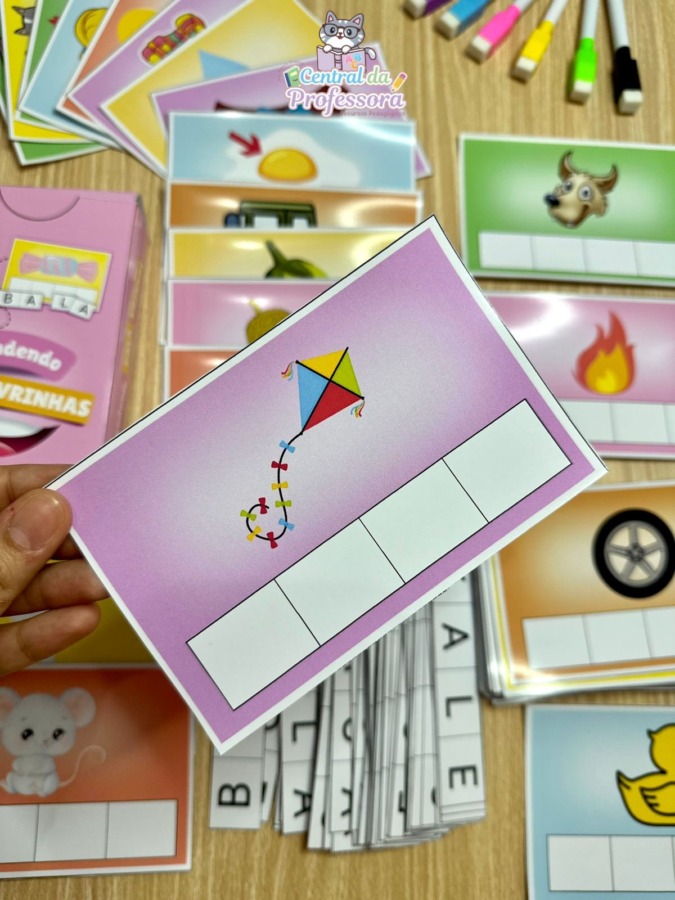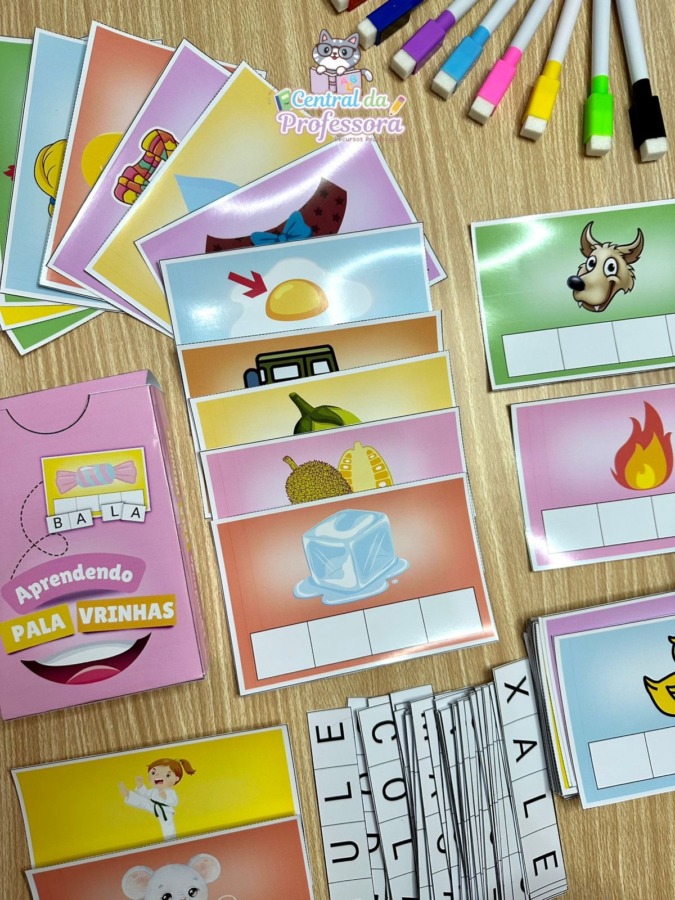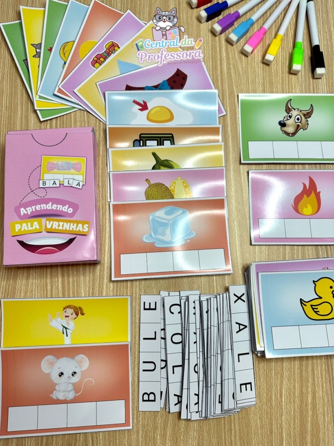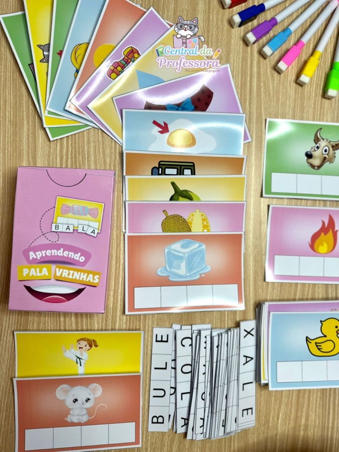 🎒 O arquivo inclui 72 fichas de palavras para brincar e aprender com letras móveis.