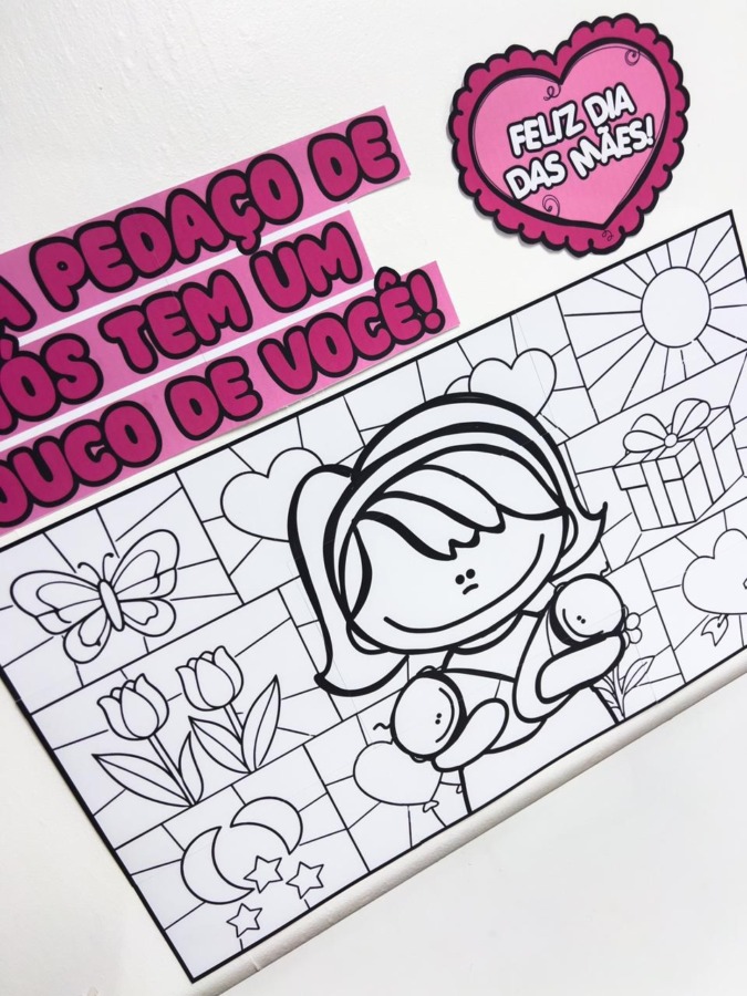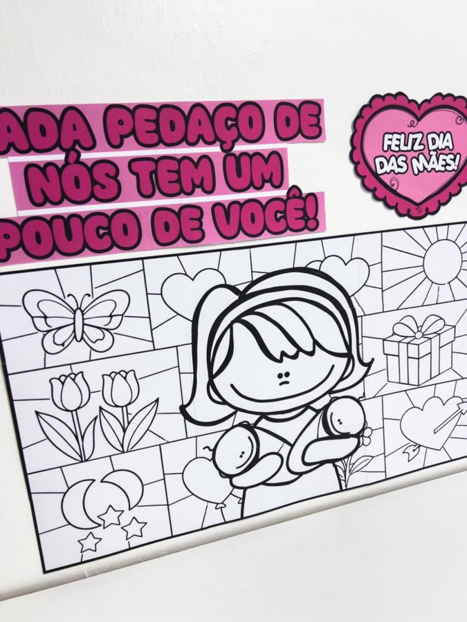 A proposta consiste em cada criança pintar uma parte do cartaz, contribuindo com seu toque único para a construção de uma obra final coletiva. Além de estimular a coordenação motora e a expressão artística, a atividade fortalece o sentimento de pertencimento e colaboração entre os alunos. Ao final, o painel montado se transforma em uma bela homenagem visual para o Dia das Mães, cheia de significado e afeto.