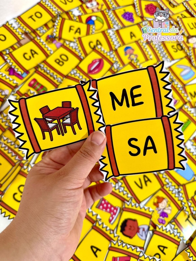 O arquivo vai em PDf já ampliado, e com as fichas das figuras e das sílabas para formação de palavras.
