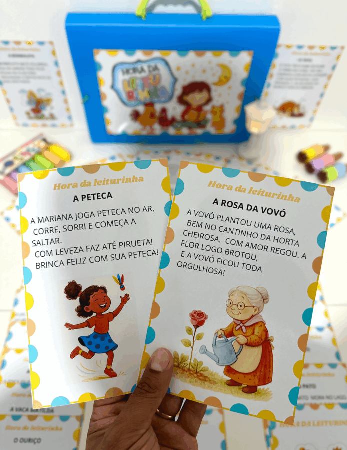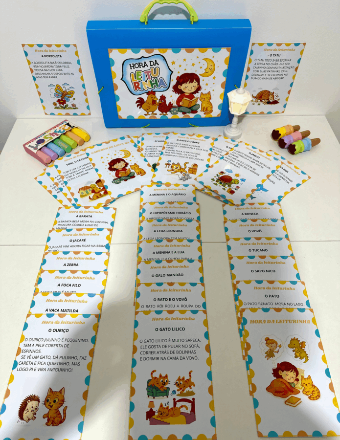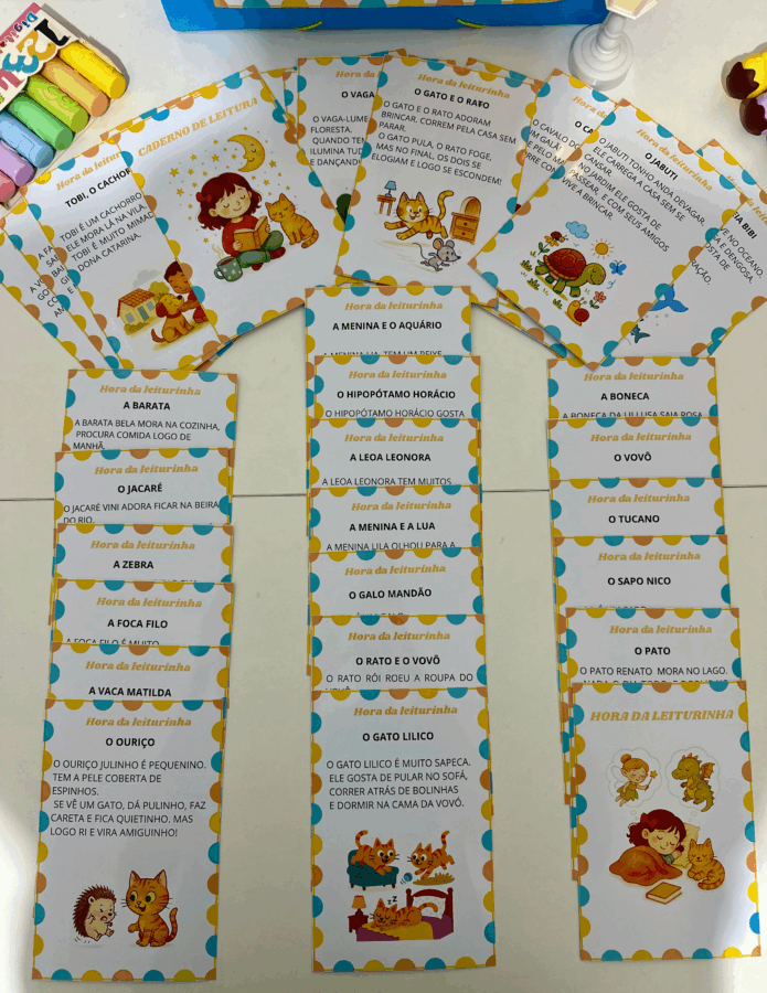 Material Hora da Leiturinha com diversos pequenos textos para treino de leitura, ideal para crianças em fase de