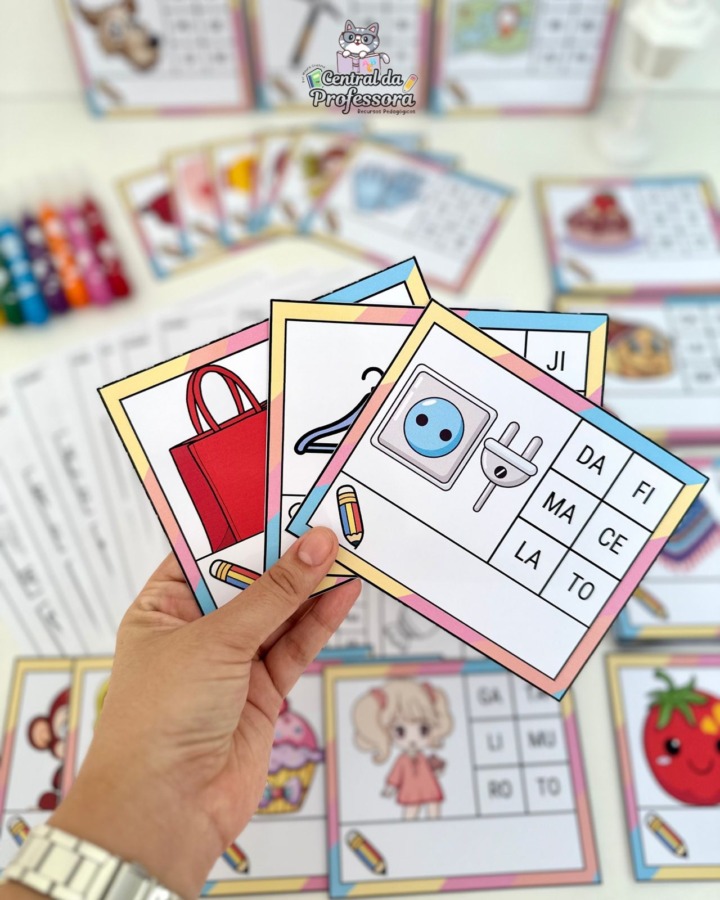 🔠 Estimula o reconhecimento das sílabas, amplia o vocabulário e fortalece o processo de leitura e escrita.