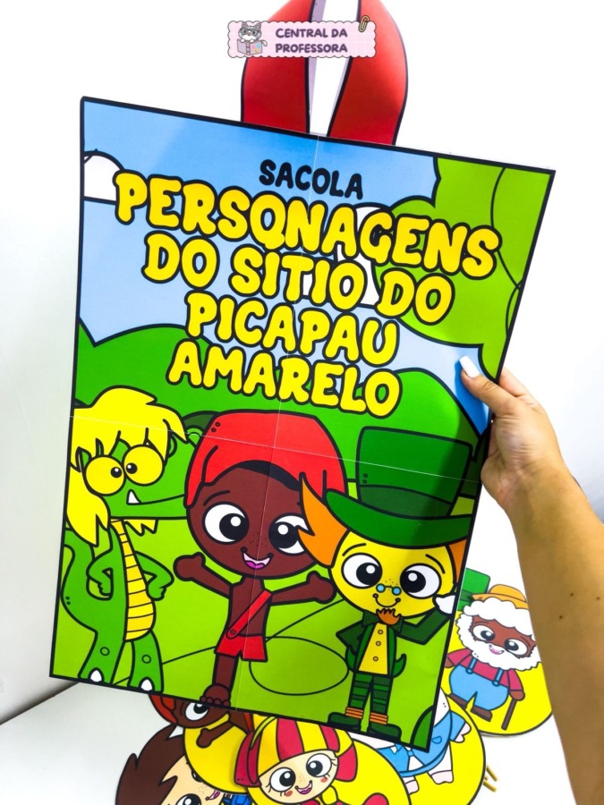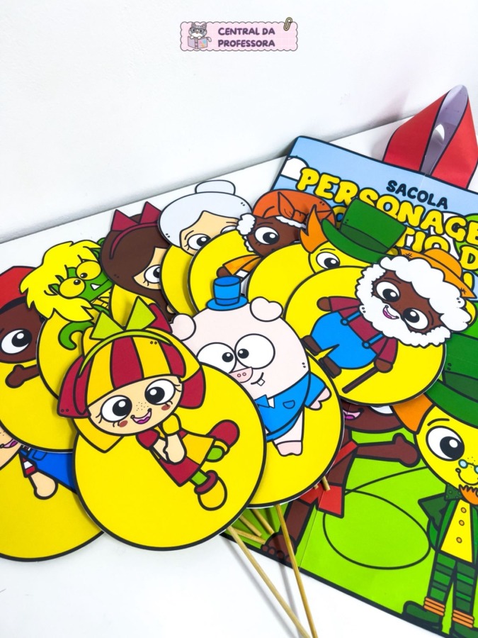 Um material pedagógico lúdico e encantador, ideal para trabalhar o Dia do Livro Infantil de forma interativa. A proposta consiste em uma sacola temática para montagem, composta por nove folhas, que serve para guardar e organizar os personagens do Sítio do Picapau Amarelo.