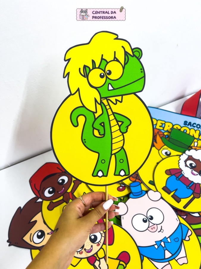 O material acompanha 10 personagens para montar, que podem ser utilizados em contações de histórias, dramatizações e diversas atividades
