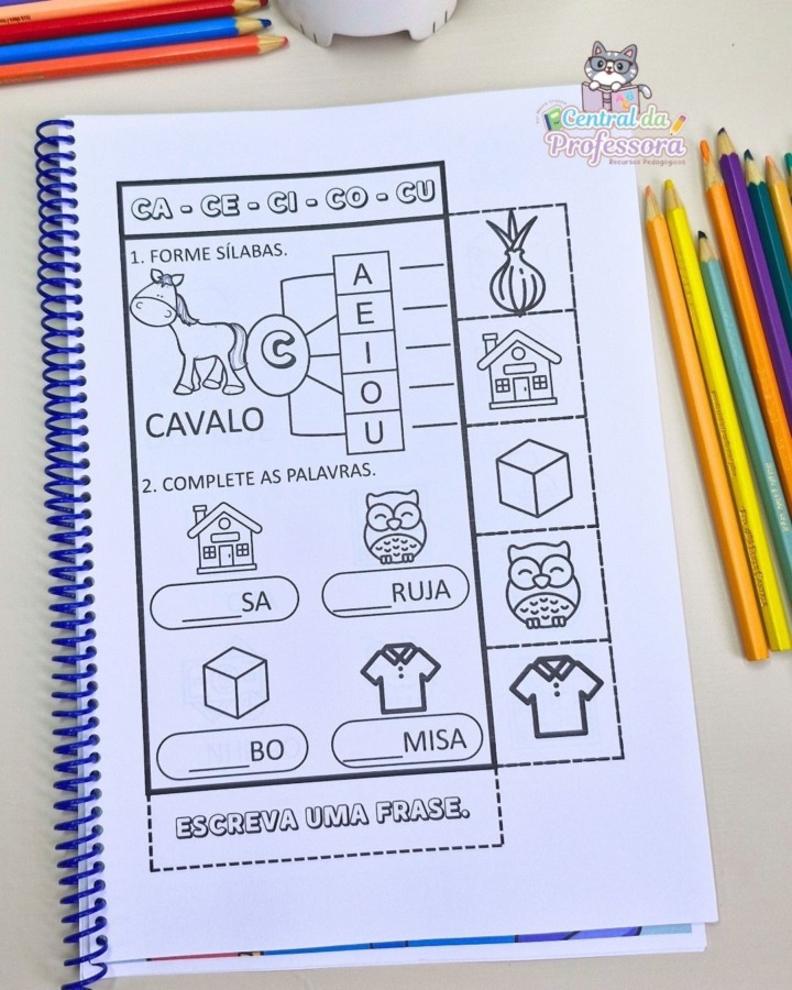 👩🏫 Ideal para professores e pais, traz atividades estruturadas e eficazes para desenvolver a consciência silábica e fortalecer a leitura. Cada página propõe desafios de formação e completude de palavras que exploram todas as famílias silábicas simples, ajudando a criança a associar sons e letras, ampliar o vocabulário e avançar com segurança na leitura e escrita.
